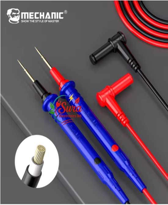 MECHANIC High-End Gold-Plated Universal Test Lead set is a premium-grade testing accessory engineered for technicians, engineers, electricians, and electronics repair professionals who demand accuracy, durability, and dependable performance from their measurement tools. Designed with superior materials such as gold-plated needle tips, double-insulated soft silicone cables, and reinforced connectors, this test lead set delivers exceptional signal integrity and long-lasting reliability for almost any digital multimeter (DMM).